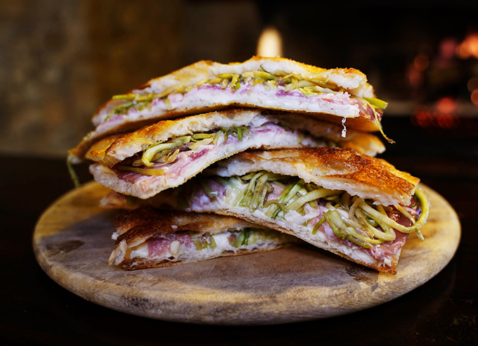 Panini GourmetL’Alberto L’ALBERTO:pizza a legna,stracchino,prosciutto crudo,puntarelle. Campagnolo Big Crash